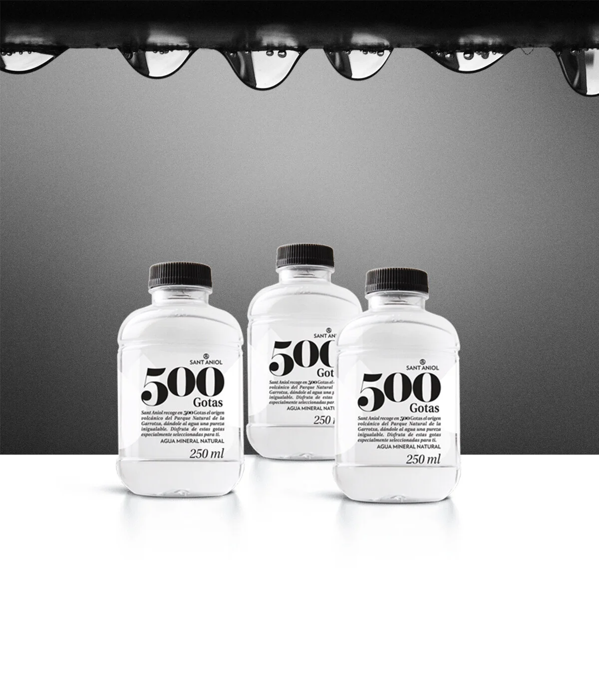 500 Drops represents the singularity of Sant Aniol. An original bottle, with rounded shapes, where transparencies and materials make it especially characteristic and particular, unique.