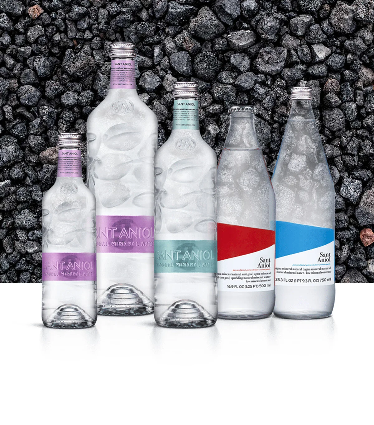 Both ranges of non-returnable bottles, rocks and classic, upraise the moment of consumption of the exceptional water of Sant Aniol. These bottles have accurate shapes and a sober aspect. The Rocks range has been specially designed for Sant Aniol, following the shape of the volcanic rocks.